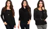 Sweaters with fashion-forward detailing and a solid black color that pairs with everything from blue jeans to skirts and leggings