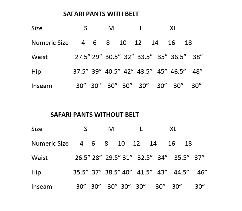 Comfortable, figure-flattering safari-style pants with practical pockets can be paired with T-shirts, blouses, or sweaters