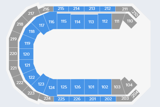 - Seating: 102 through 126