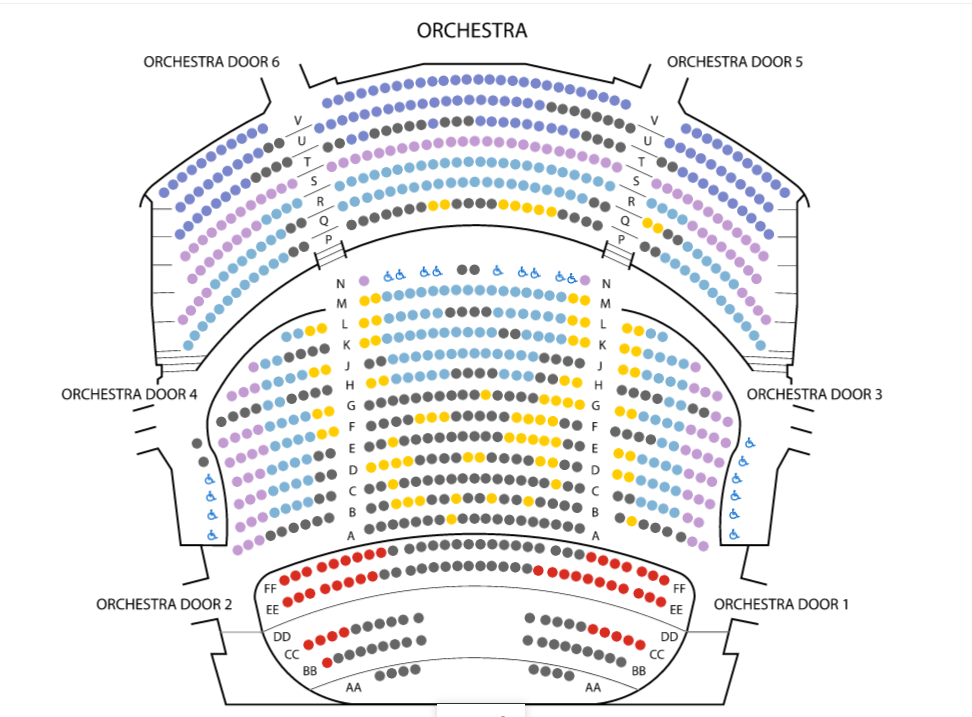 - Seating: rear lower balcony/front upper balcony or rear orchestra/front lower balcony