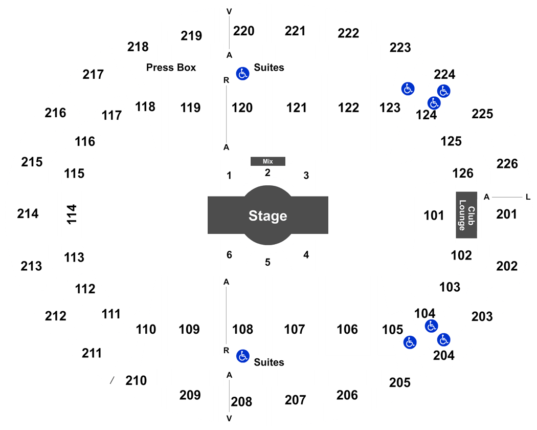- Seating: level 100 and 200