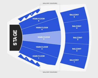 - Seating: Balcony 1 | Balcony 5 | Main Floor 1 | Main Floor 5