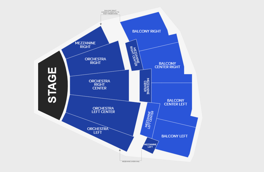 - Seating: Balcony Center Right, Balcony Center Left, Balcony Right, Balcony Left