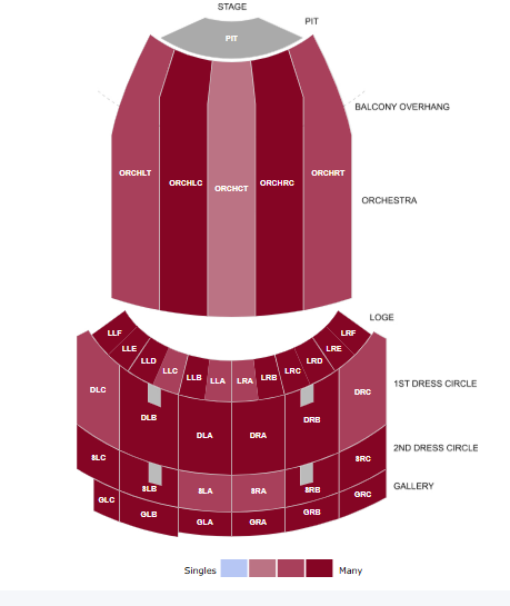 - Seating: Orchestra Left/Right Row PP,RR, DLA Row L; Orchestra Right/Left Row X,Y,Z; Orchestra Left Center, Center, Right Center Row T, Orchestra Right/Left Center Row U