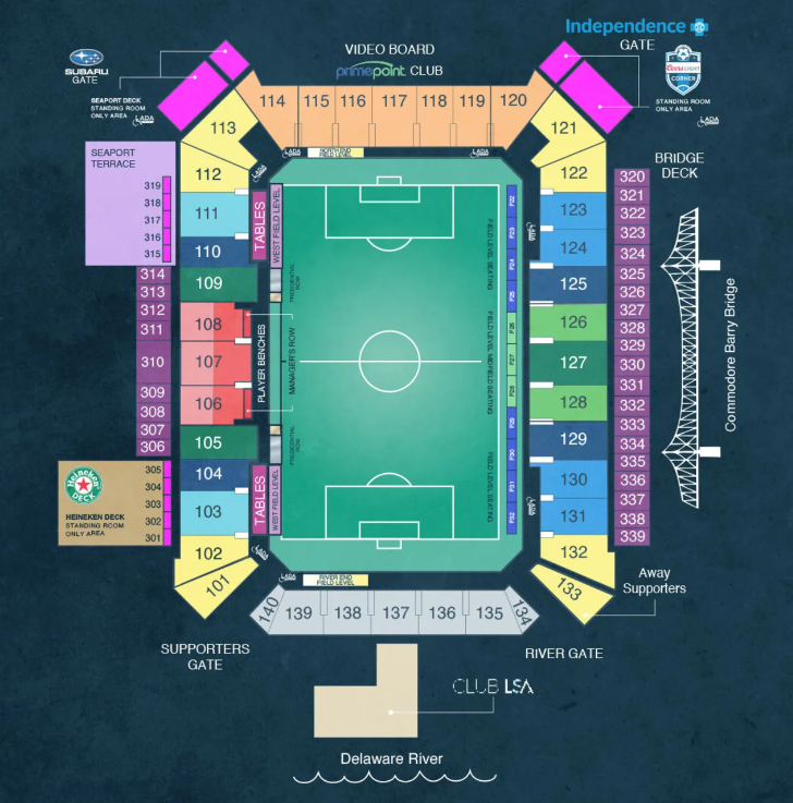 - 18,500 seat capacity Soccer specific stadium on the Delaware Riverfront