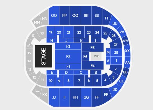 - Seating: Floor 3 | Floor 1 | Floor 2 | QQ | RR | GG | HH | 4 | 25