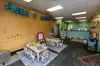 Caregivers enjoy a space to relax and recharge while children engage in safe, stimulating activities designed for their development.