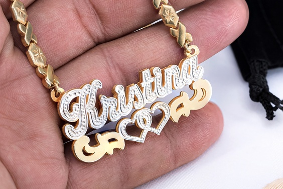 Create a stunning, personalized keepsake with a double-plated name necklace from MonogramHub. Crafted with an elegant script font and a striking 3D layered effect, this necklace is available in Sterling Silver, 14K Gold Plated, and other premium finishes.