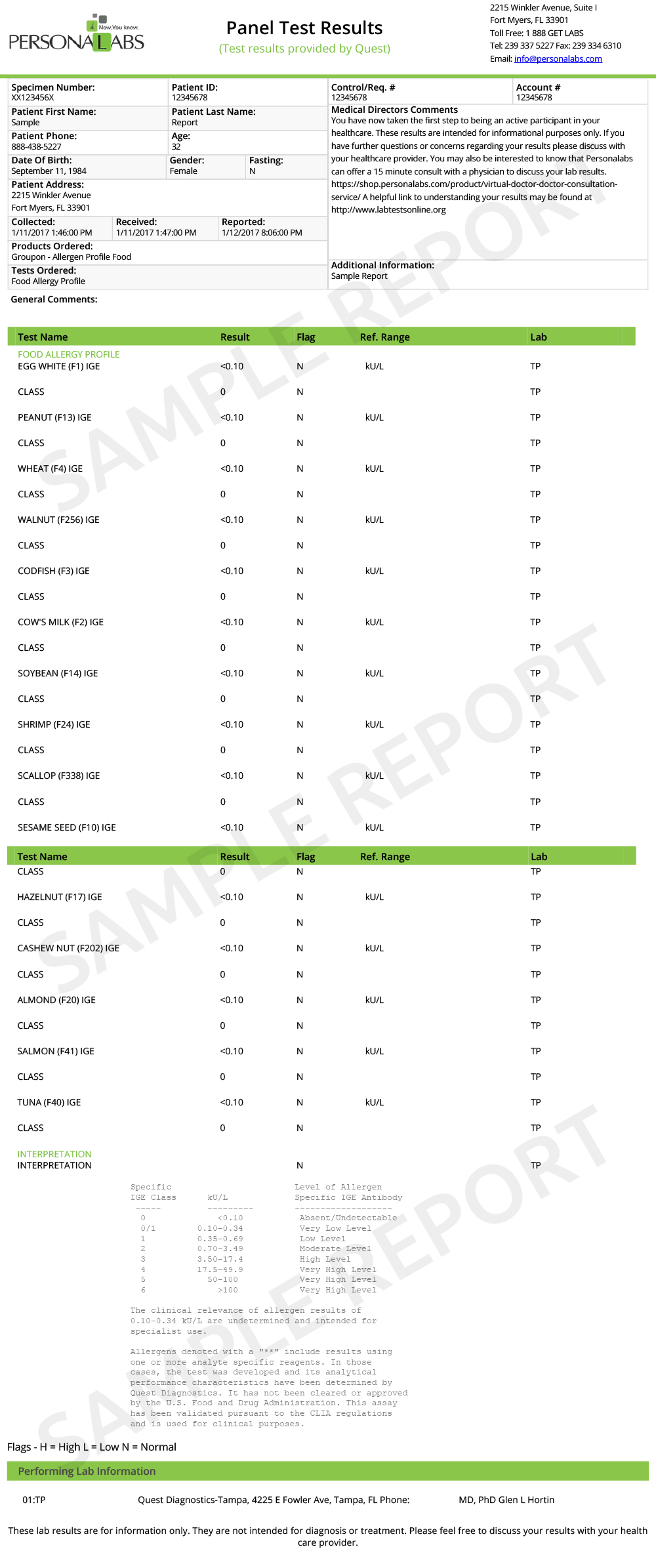 Basic or Standard Food Allergy Lab Test from Personalabs (Up to 79% Off)
