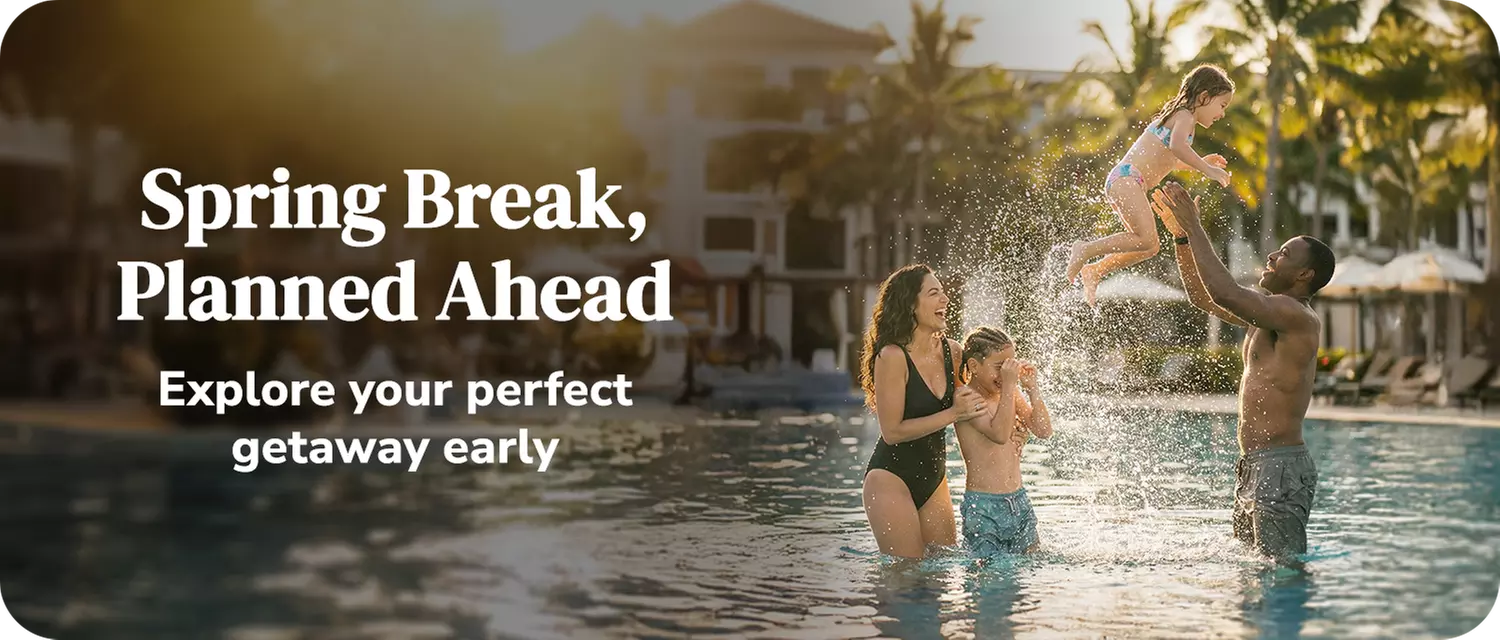 From beach resorts in Cancun and Miami to cabin getaways and Las Vegas escapes, our Spring Break travel deals are designed to fit your budget and your vibe. Save big on hotels, vacation packages, and last-minute getaways—with extras like flexible booking and exclusive perks.